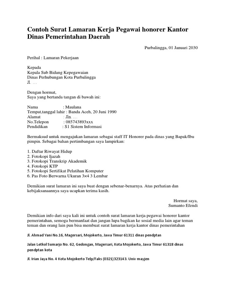 Namun walaupun sekolah tersebut tidak membuka lowongan kerja, maka tidak ada salahnya untuk melamar kerja disana, walaupun mungkin hanya sebagai guru honorer. Dengan ini bermaksud mengajukan lamaran sebagai guru honorer di unit kerja smk negeri 3 magetan yang berada di bawah lingkungan dinas pendidikan . Contoh surat lamaran kerja guru sma smk swasta dan honorer written by della yulischa november 18 2019 add comment . Ingin melamar pekerjaan sebagai guru? Kerja melamar cv contoh guru.