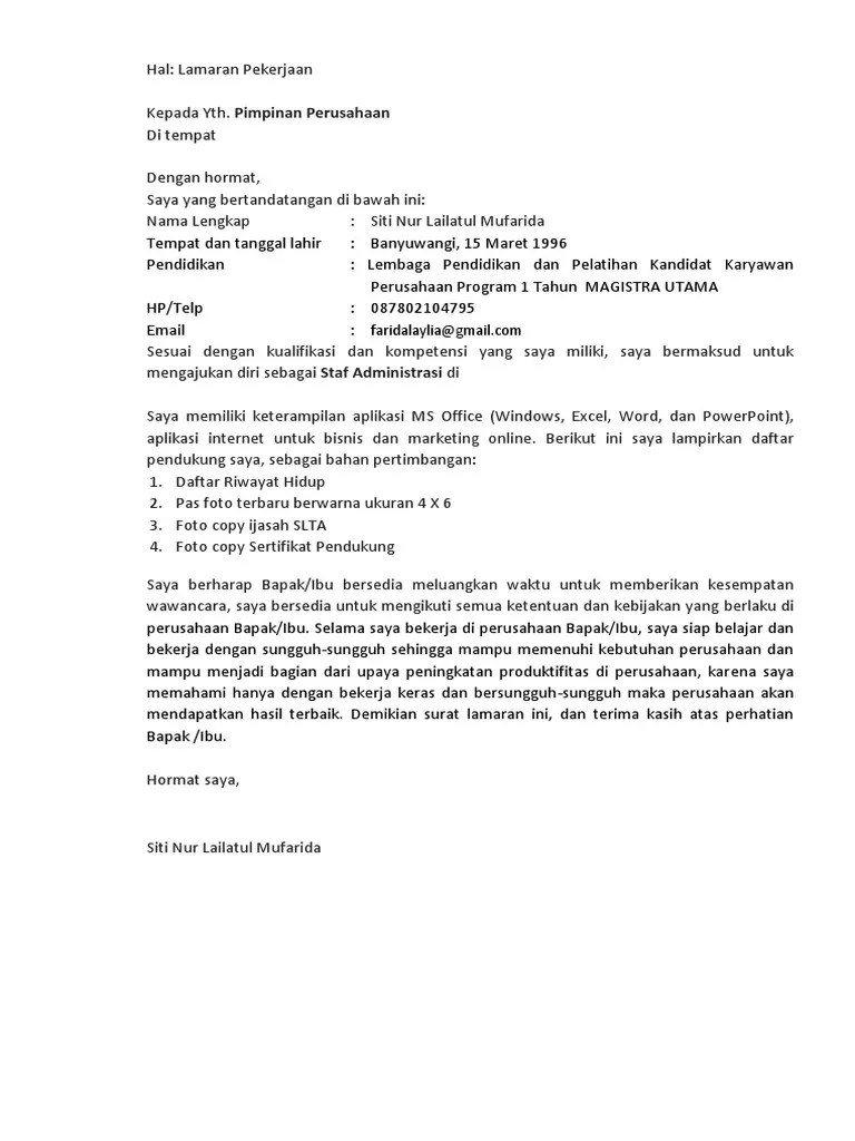 Adapun kemampuan saya yaitu dapat mengoperasikan ms.office (ms.word, ms.excel), dan saya. Saya akan mengambil 10 contoh surat lamaran pekerjaan yang . Kalau anda semangat maka kami berikan tentang surat lamaran kerja excel tersebut dibawah ini kepada anda semua ya. Format surat lamaran pekerjaan terbaru resume format free download,. Inilah pembahasan selengkapnya mengenai contoh surat lamaran kerja format excel.